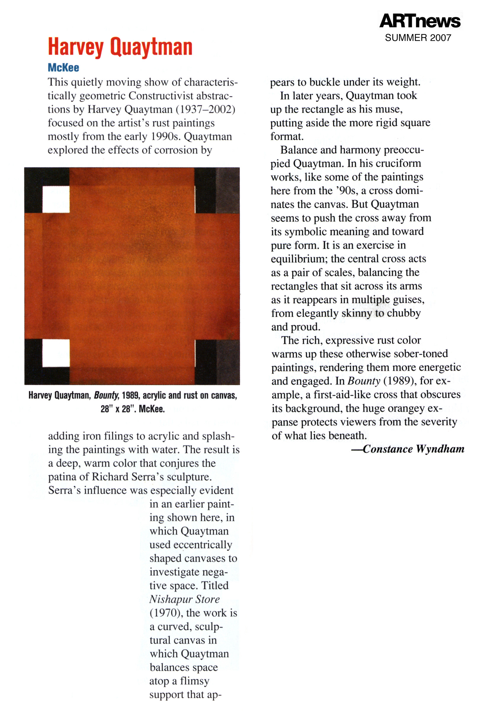Harvey Quaytman ArtNewsSummer 2007 Review from McKee Gallery.